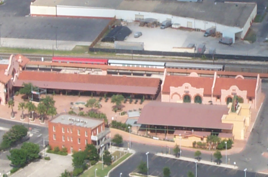 Our private cars at the SP train depot As seen from the Tower of the Americas