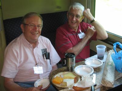 Ron Gawedzinski (left) and Jack Stroker enjoying the welcome aboard party in the lounge