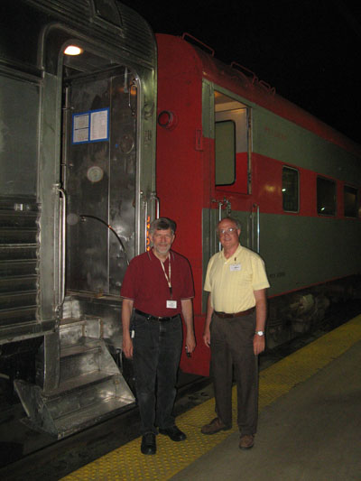 Capitol Limited both directions. As we have done the previous two years, we took two cars – ex-Frisco 14-4 sleeper Cimarron River and ex-Union Pacific 10-6 sleeper Pacific Union. We experienced clouds and rain Saturday morning in Chicago and on the way to Washington. After a thunderstorm upon arrival in Washington DC Sunday afternoon, the weather turned sunny and mild. As usual our 28 passengers found many things to do and see during their stay, including free concerts at the Kennedy Center and on the Capitol steps. Some even went to Baltimore to see the B&O Railroad Museum. Thursday was departure day. Rain fell off and on as we departed Washington DC and headed up the Potomac River valley. Mist laid in the valley as we departed Cumberland, MD and headed up Sand Patch grade. The next morning dawned clear as we crossed Indiana. After a day layover in Chicago we returned to St. Louis to complete another fabulous trip. Here are a collection of memories from the trip. Hope you can join us next year! |