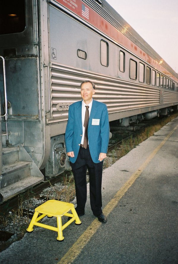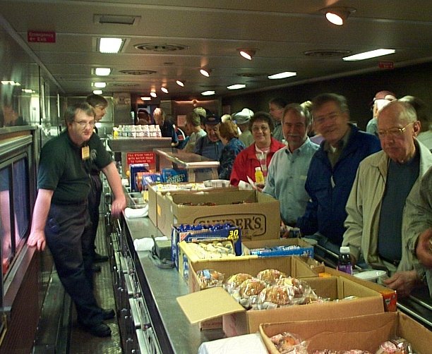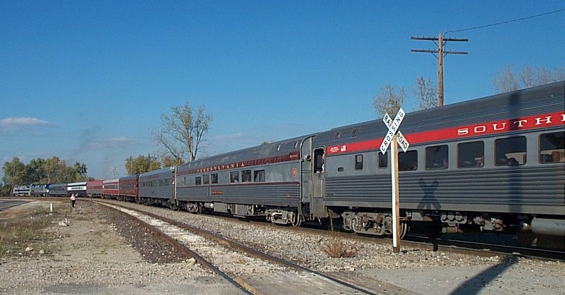 The Chapter ran a pair of day excursions from St. Louis to Ste. Genevieve on the first weekend of November, 2003. While the Saturday weather was typical autumn overcast, the Sunday weather was sunshine and 80 degrees. We were joined on board by a welcoming committee from Ste. Genevieve who provided information and answered questions about the town prior to arrival. The train was met with a band and other local, period dignitaries including the King and Queen! Passengers had several hours to explore the town's historical buildings and gift shops before the train whisked them back to an early evening arrival in St. Louis.